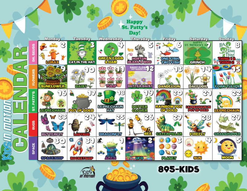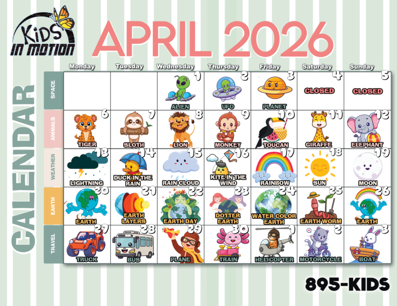 Our programming includes a craft of the day. These fun, age-appropriate crafts are found on the Kids In Motion calendar.