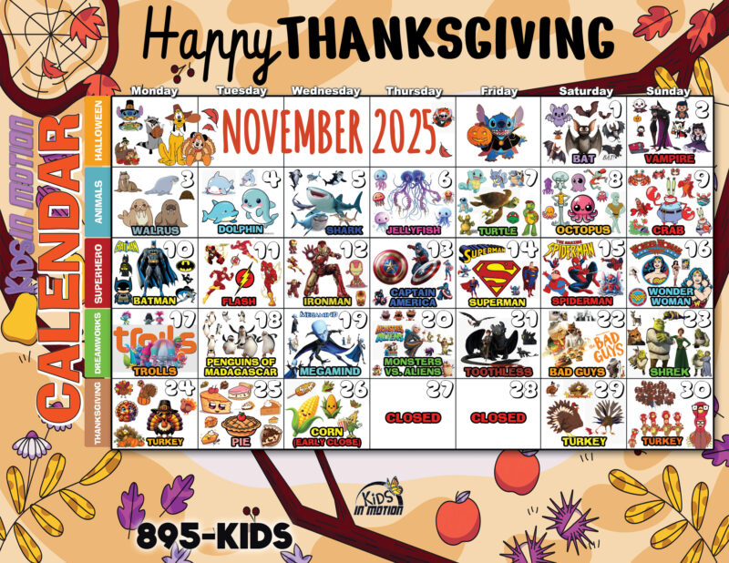 Every month, our dedicated faculty crafts imaginative and exhilarating activities designed to ignite the spirit of Kids In Motion. These engaging sessions ensure a thrilling experience that keeps your children eagerly anticipating each visit, while you're out getting your workout on!